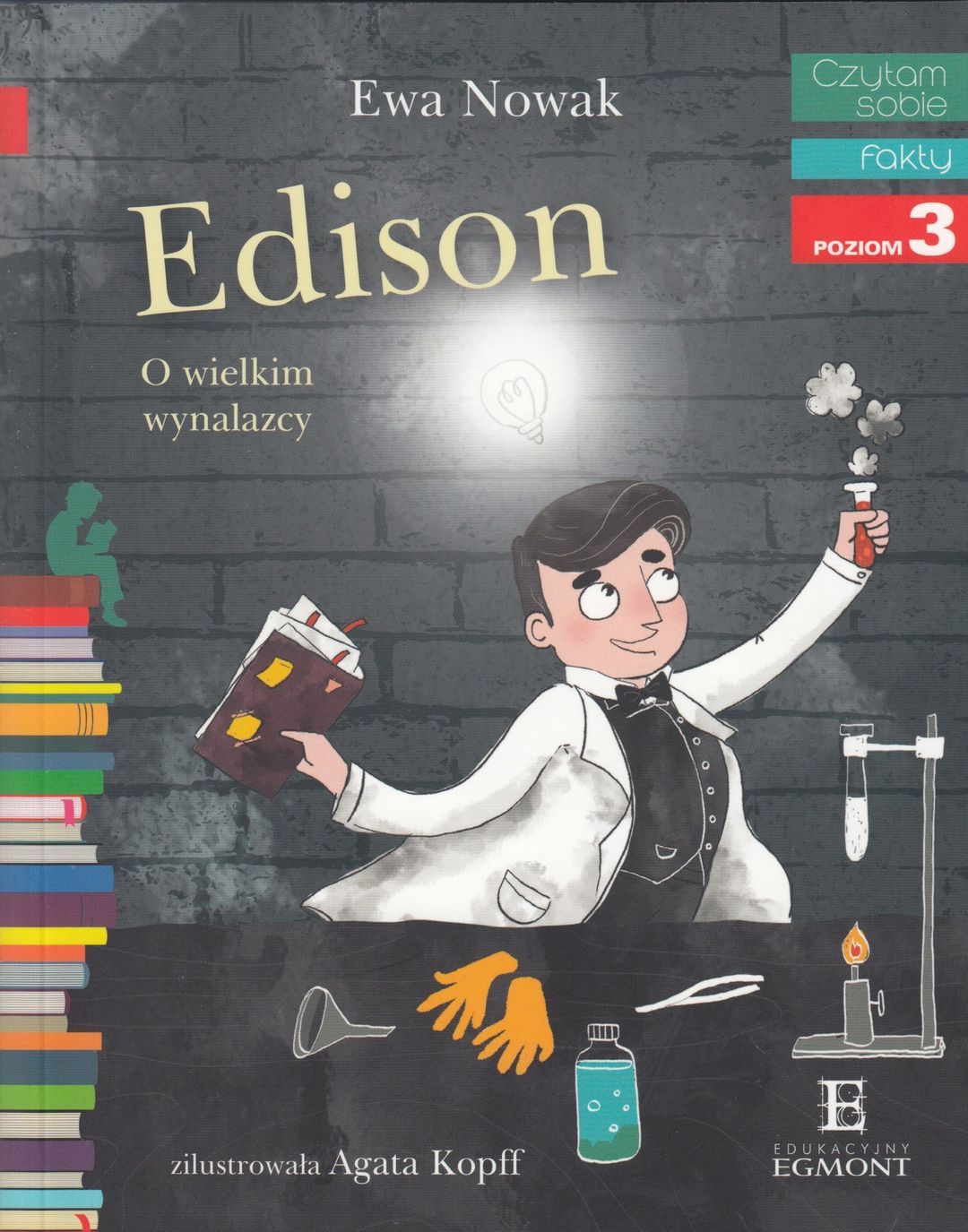 Edison : O wielkim wynalazcy / Ewa Nowak ; zilustrowala Agata Kopff. - Warszawa : Wydawnictwo Egmont Polska, 2017. - 63, [1] s., [1] k. tabl. : il. kolor. ; 19 cm.