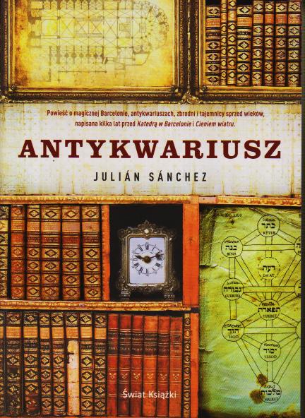 Tyt. oryg.: El anticuario. Na okł.: Powieść o magicznej Barcelonie, antykwariuszach, zbrodni i tajemnicy sprzed wieków, napisana kilka lat przed Katedrą w Barcelonie i Cieniem wiatru.